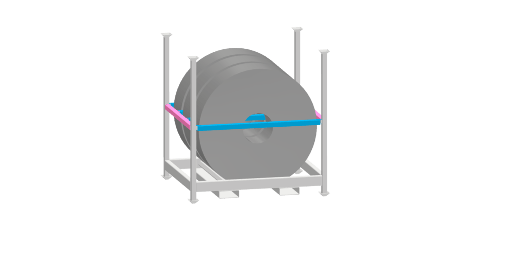 In some applications these coil cradles are also used as a cradle rack to stage the coils in the production area, and the product in the steel rack can be fed directly into the production process from the coil cradle.