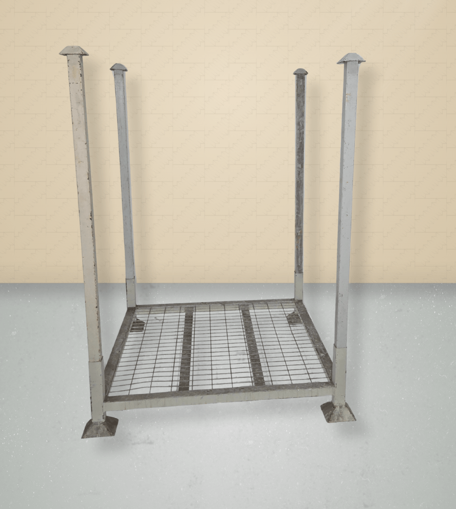 Approximate used tier racks size: 48” x 48” x 60”. These 4′ x 4′ racks are the perfect size stack rack to fit a standard 48×40 gma pallet. All steel stack racks available are with wire mesh decking, perfect for any size boxes or pallets and make these 4 ft racks safe to walk on. Colors may come as blue or light gray. This 48 x 48 used stacking rack has a mushroom style connection, which is the most sturdy connection there is. Multiple locations available to ship from.